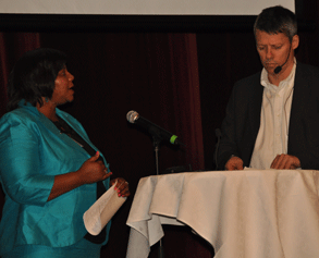 Cllr. Nondumiso Maphazi, Executive Mayor of Nelson Mandela Bay and Jens Orback, conference moderator/photo Björn Olsson