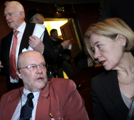 Görgen Linder, Lord Mayor of Göteborg talking to Chairman of Göteborg City Executive Board, Anneli Hultén;